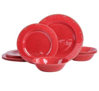 Ginsu Kiso 14-Piece Red Knife Set with Black Block – Dishwasher Safe and Always Sharp