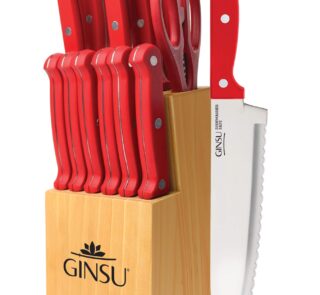 The Christmas Boutique 24 Piece Casual Living Stainless Steel Red Handle Flatware Set with Silverware Caddy