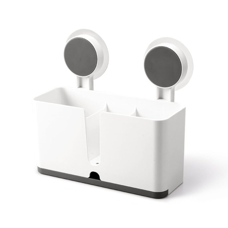 Cetomo Wall Mounted Storage Organizer, Adhesive Self-Draining Shower Caddy, Plastic Shelf with 3 Compartments and Removable Drain Tray for Toiletries Kitchen Utensils Bathroom Cabinet, White