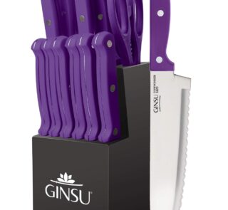 Ginsu Kiso 14-Piece Black Knife Set with Natural Block – Dishwasher Safe and Always Sharp